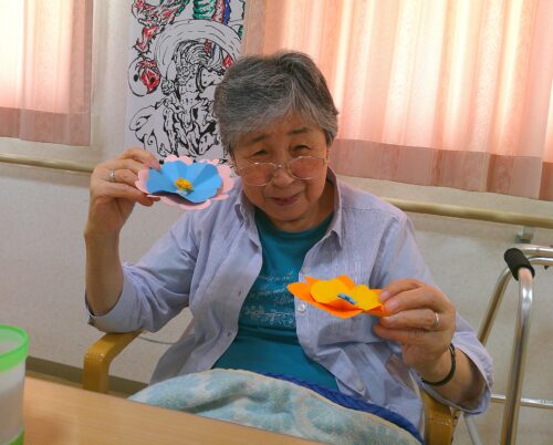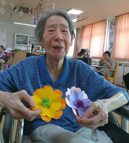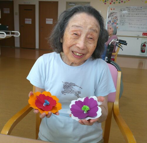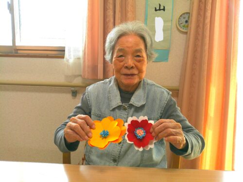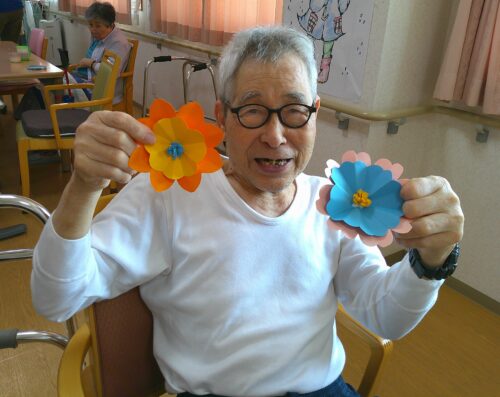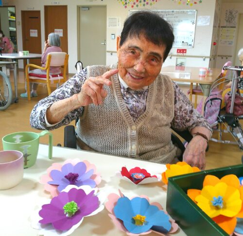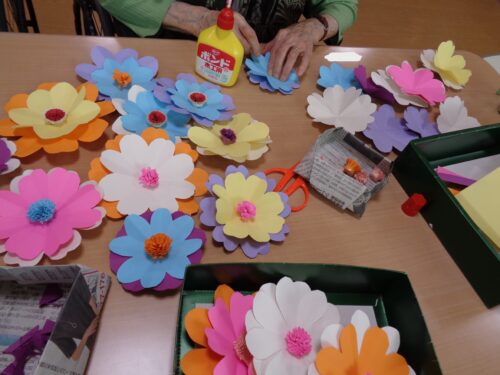 フロアに装飾予定のお花飾りを作っていただいています💐