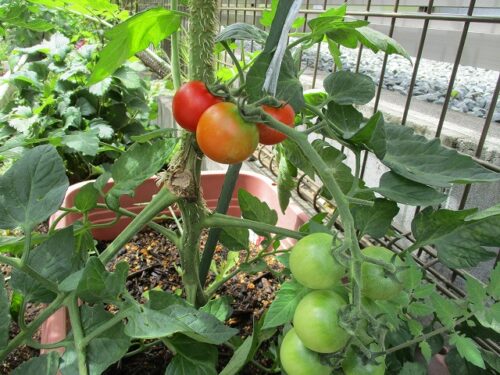 昨日の夕方ミニトマトが3個赤くなっていたので