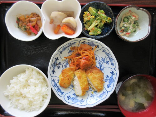 (月)ジャーマンオムレツ・里芋の煮物・竹輪の磯部揚げ