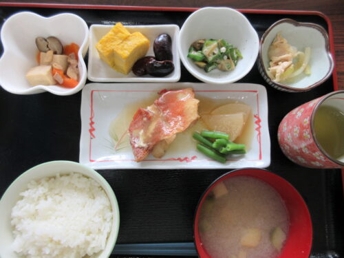(金)赤魚の煮つけ・高野豆腐の煮物・玉子焼き・黒豆
