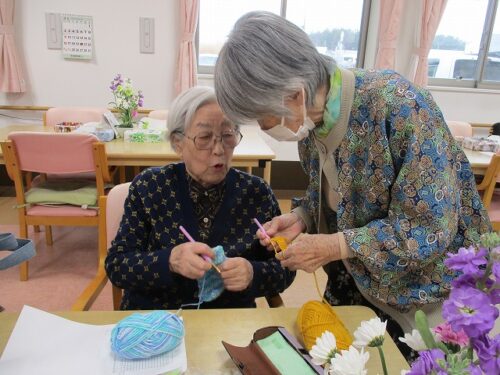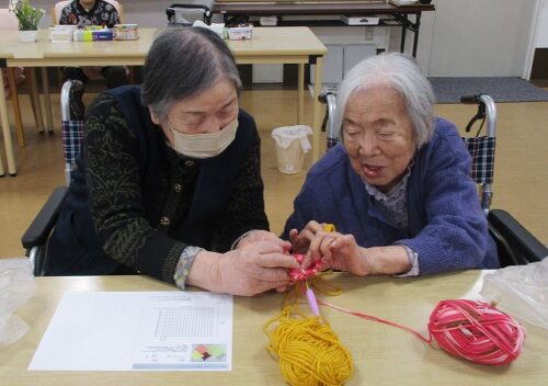 さて今日は、先日行った「編み物レク」の様子をお伝えします!