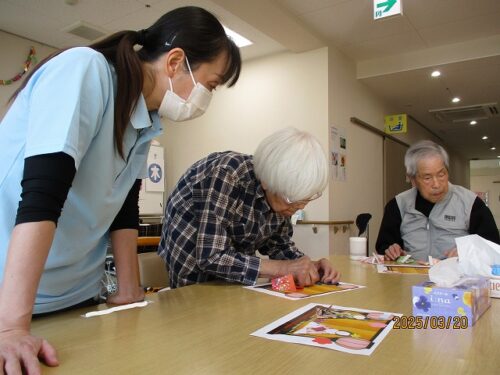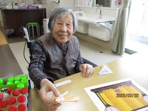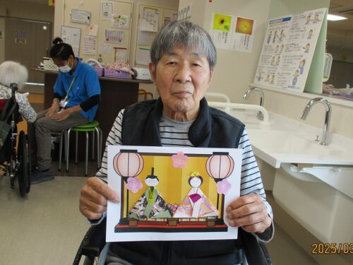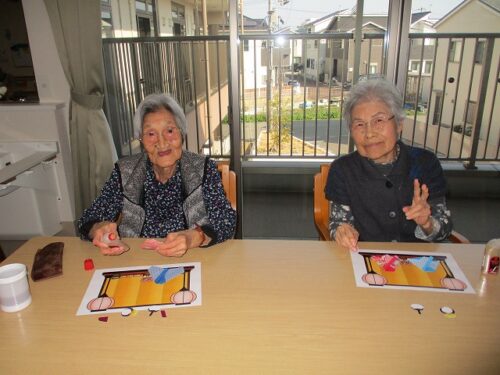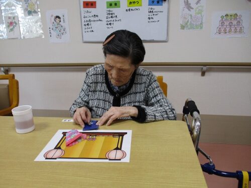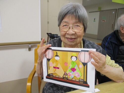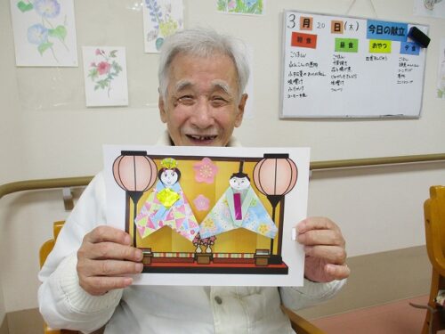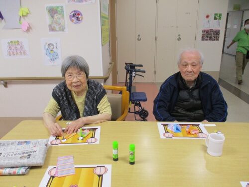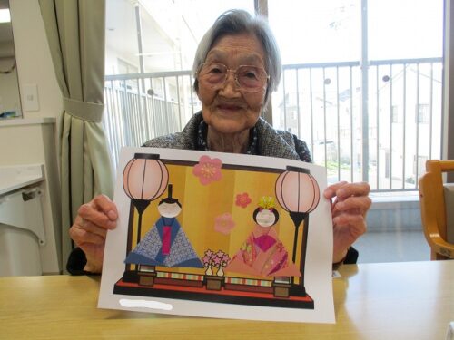 製作レクで、和紙を使って雛人形を作成しました。
