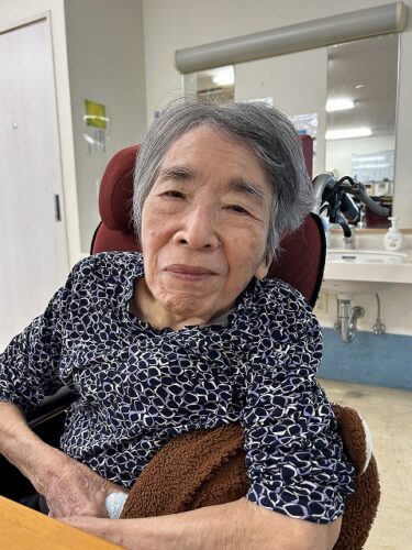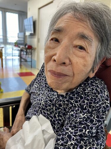 今日の夕方にご入居者様とおやつを召し上がられながら