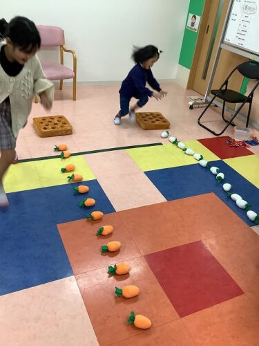 ふわふわの畑に、にんじんとだいこんが一杯だ(*^▽^*)