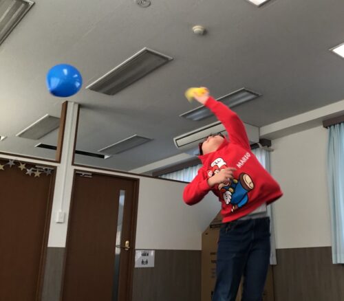 3月21日(金)は、運動「風船スティックバレー」をして遊びました!