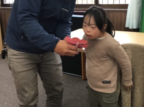 お家の方に「ありがとう」の気持ちを込めて書いた「ありがとうの花🌼」を渡した際の、