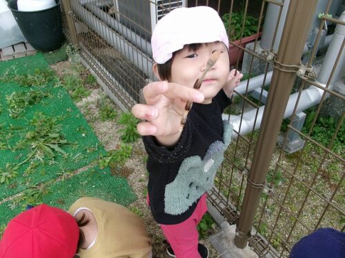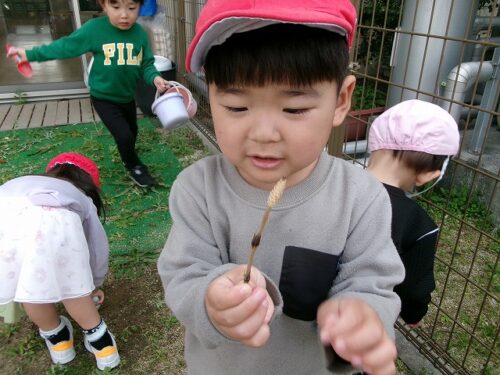 「ねぇねぇ、せんせい、お外に変な草生えてる…」