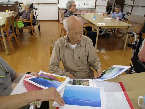 新しい写真集をご用意したのでご入居者様にさっそく見ていただきました😉