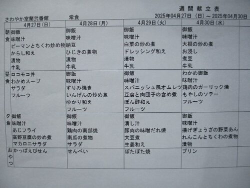 さわやか室蘭弐番館 4月 献立♪ 2025-04-01 2025-03-31 皆様こんにちは♪ 今月の献立をお届けします 行事食は26日(土)昼食です 食材の都合により急遽 変更させて頂く場合もございます ご了承下さい