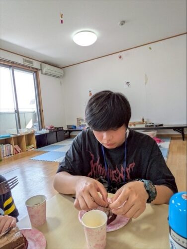 児童が1番楽しみにしていたおやつを食べながらのパーティー🎉です。