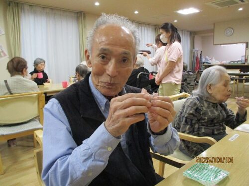 さわやかあびこ館 お雛様レク② (さわやかあびこ館 千葉県我孫子市介護付き有料老人ホーム) 2025-03-29 2025-03-29 クイズの後は各階に戻り桜餅を頂きました あんものは皆様とても喜ばれておりました さわやかあびこ館 籾山💖