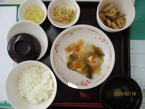 ご飯・厚揚げ五目炒め・南瓜とツナの煮物