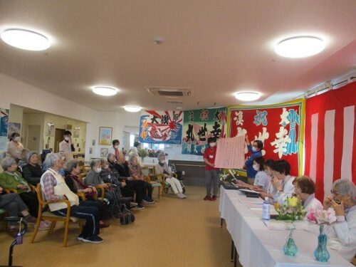 ご入居者様皆様で演奏に合わせて、歌いました🎤