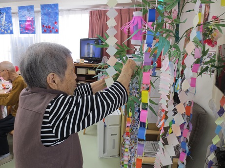 グループホームかがやき ♪ 七夕飾り ♪ 2024-07-13 2024-07-13 短冊に書いて頂きました🎋 フロアーも飾りました🎋 皆様の力作です、たくさん貼って頂き完成したものです🎋 次は、七夕お膳料理と誕生日会をお伝えします🎋 ☆ う す い ☆彡_(._.)_