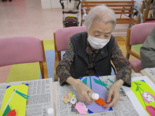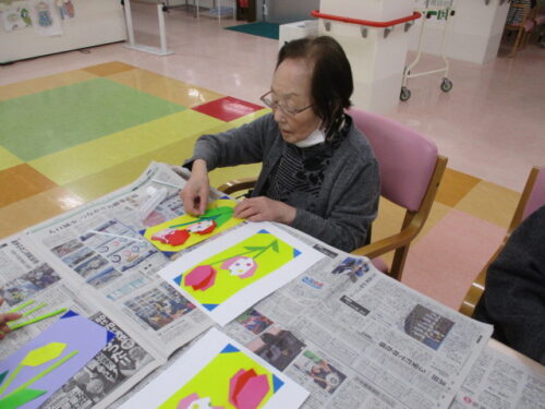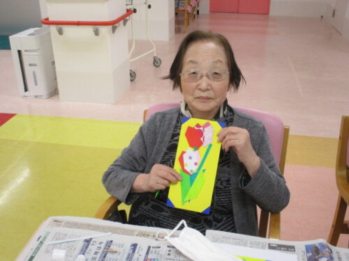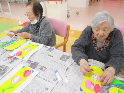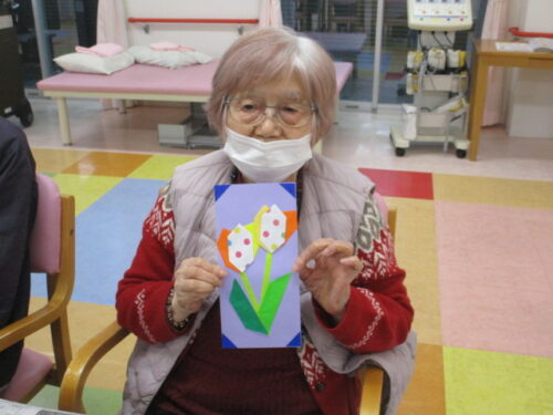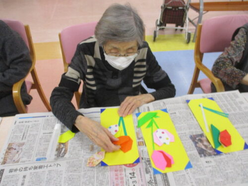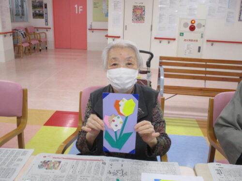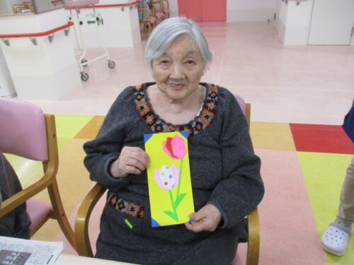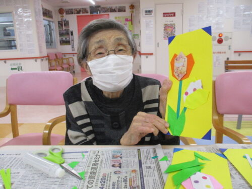 桜弐番館では先日ものつくりレクを行い、チューリップの飾りを作成して頂きました!
