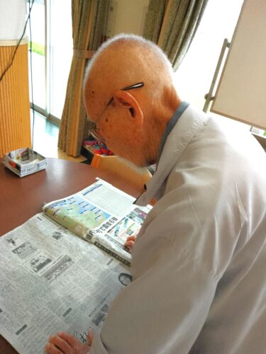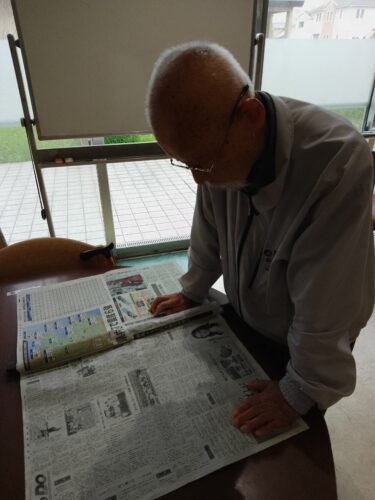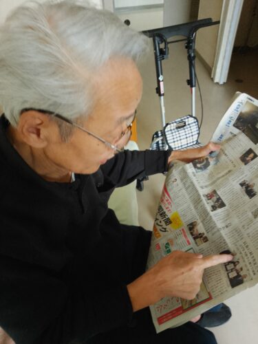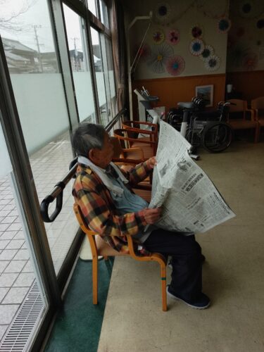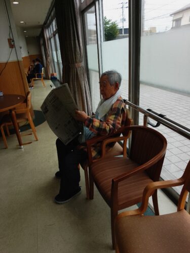 こちらのK様は1階フロアの新聞を読んでいます。 他の方が読むまで静かに待っています👍