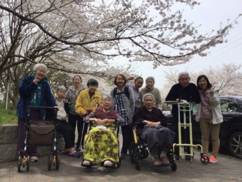 外は曇り空で少し肌寒かったのですが、きれいな桜を見て皆様にこにこ😆