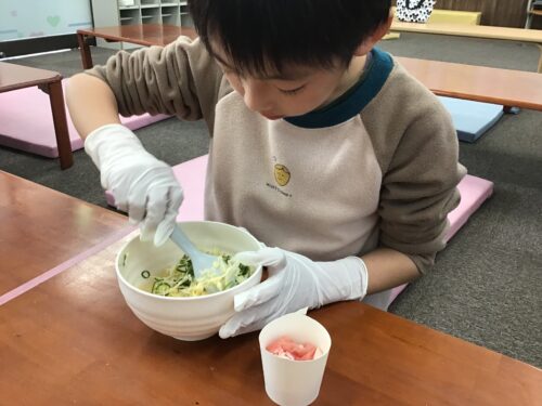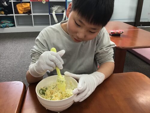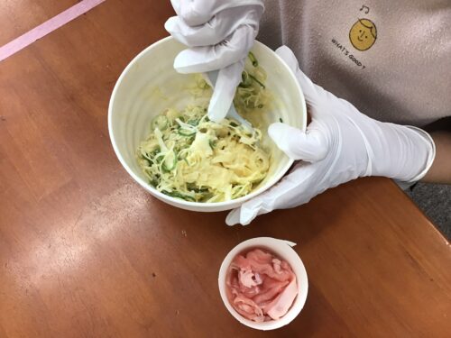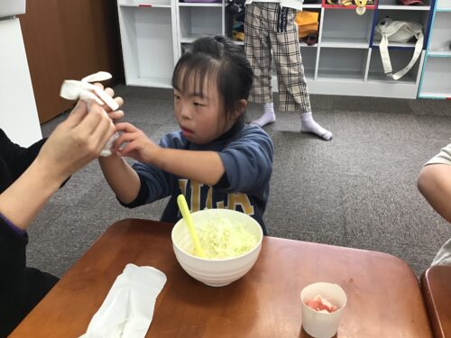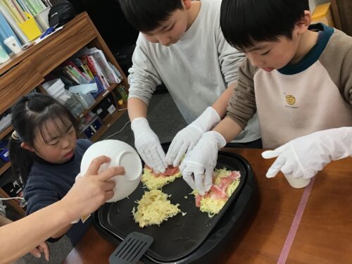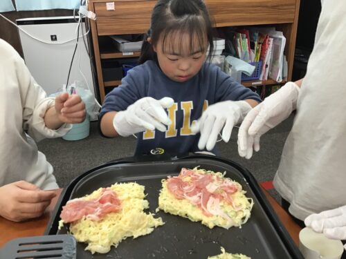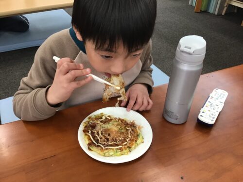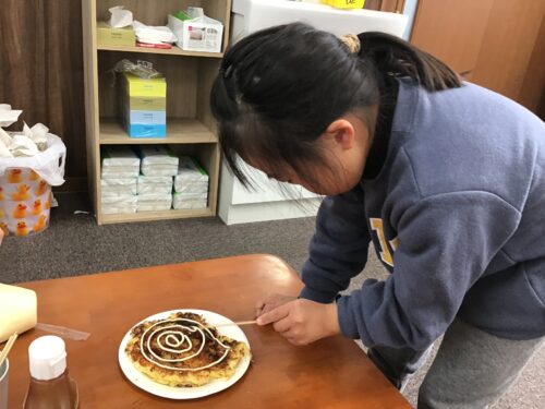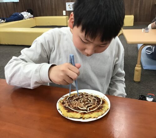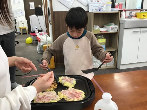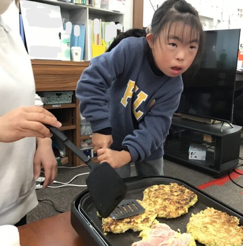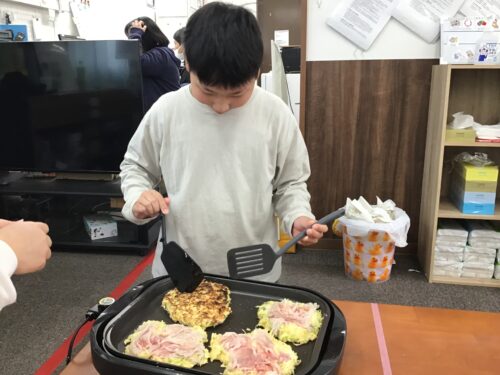 3月31日(月)は、調理レクで「お好み焼き」を作りました!