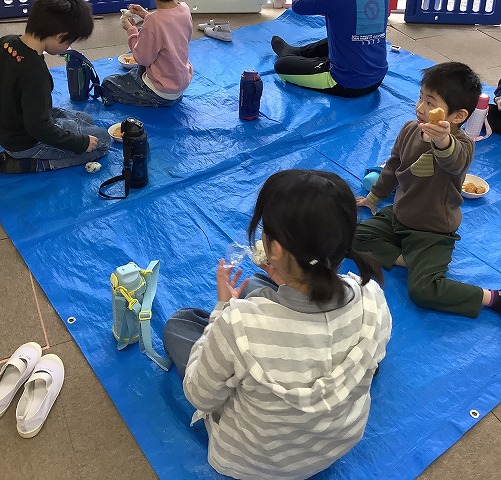 でも大丈夫❗ピクニックごっこで楽しいお昼ご飯です(*^▽^*)