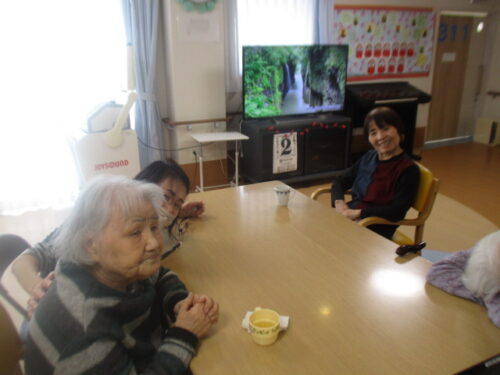 昼食後ののどかなひと時を、スタッフも交えて、しりとりをしました。