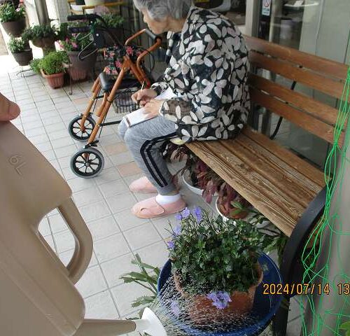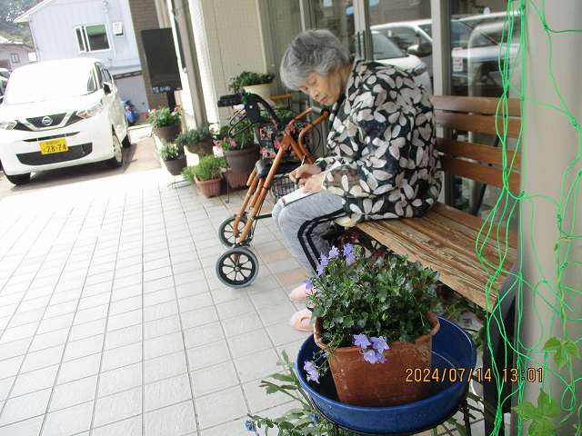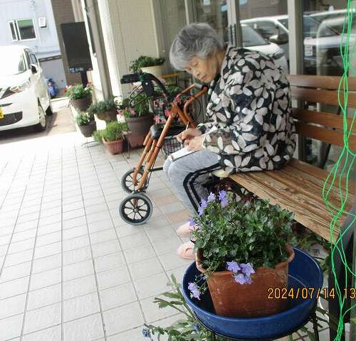 さて、こちらはお花に水やりをしていると「ちょっと外に座るよ」と言われ花を見ながら「一句」見せてくれませんが口から洩れた句は素敵でしたよ!