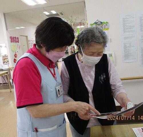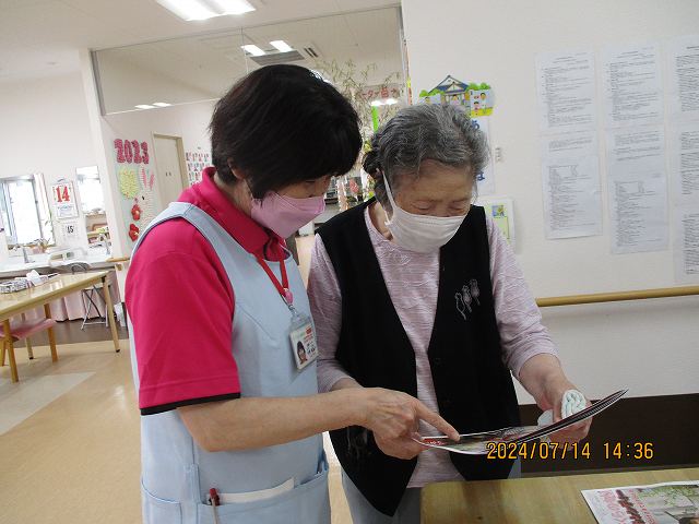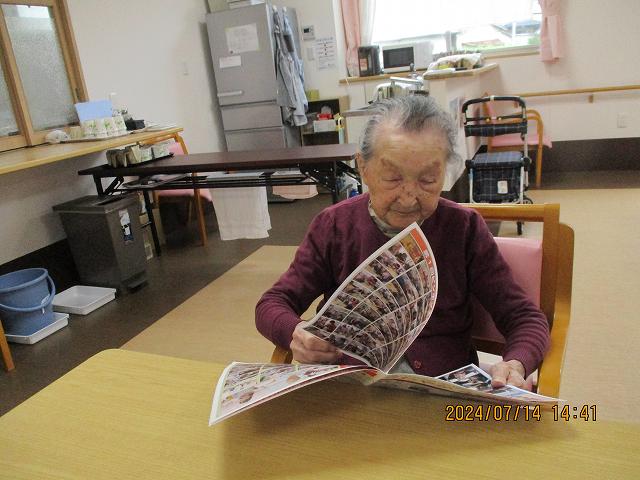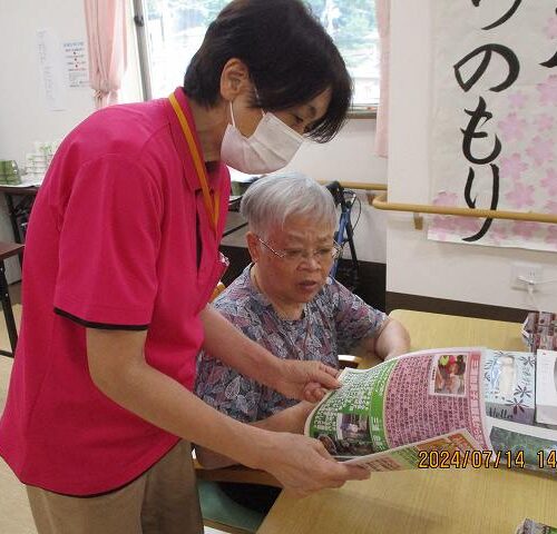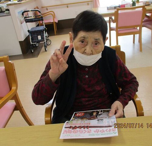 「ちょっと~、広告に私の写真使ったでしょう!」と職員の肩をビシバシ叩きながら嬉しそうにご覧になっています。(本当は事前に確認済み 笑)