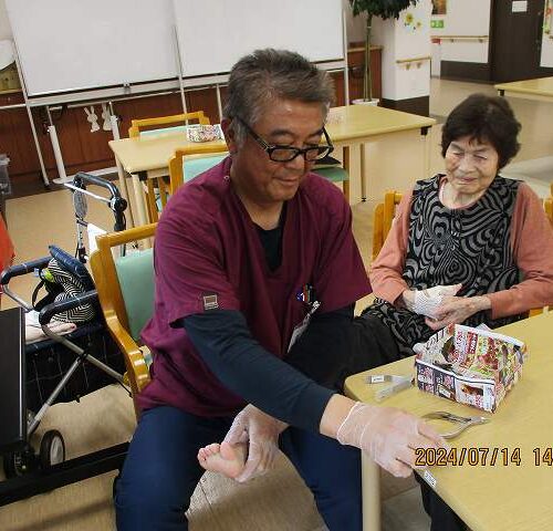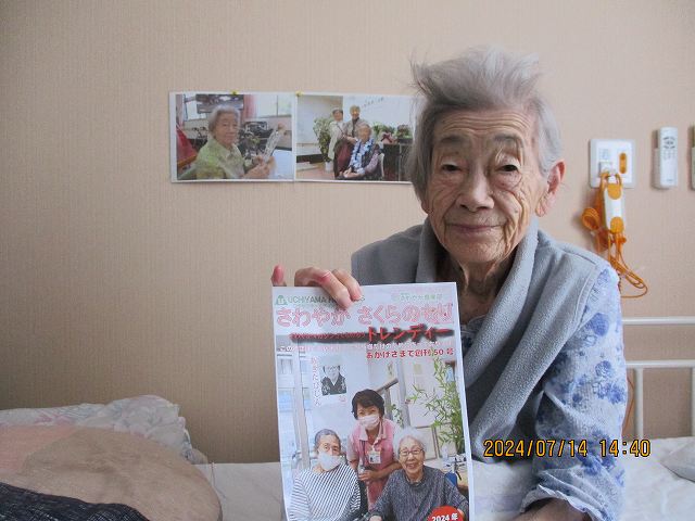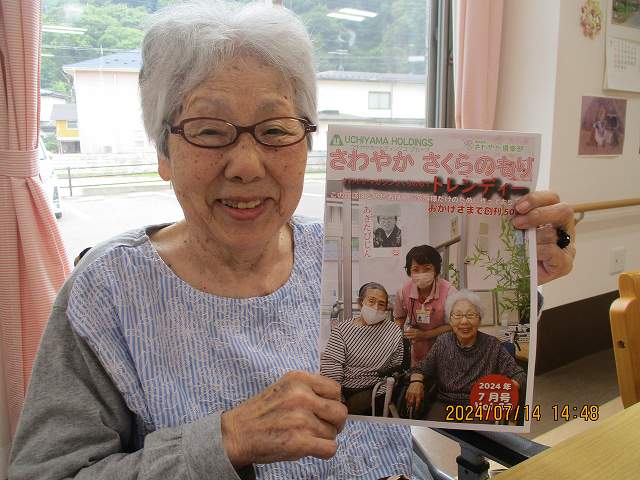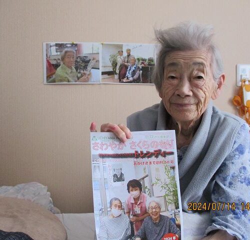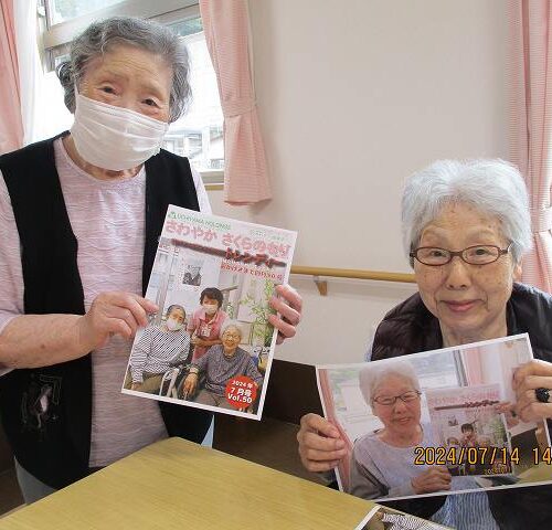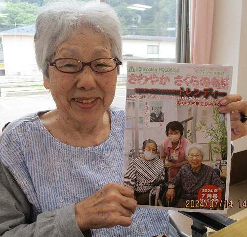 そして今日はおやつ時に「さわやかマガジン さくらのもりトレンディー」の今月号をお配りさせて頂きました。オープンから毎月一度も切らさず今月で50号!何とかここまでたどり着きました。毎月楽しみにされている方からお声がけ頂くとやる気が出ます!看護師に爪の切って頂きながら見ている方も!(笑)
