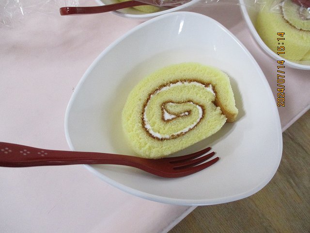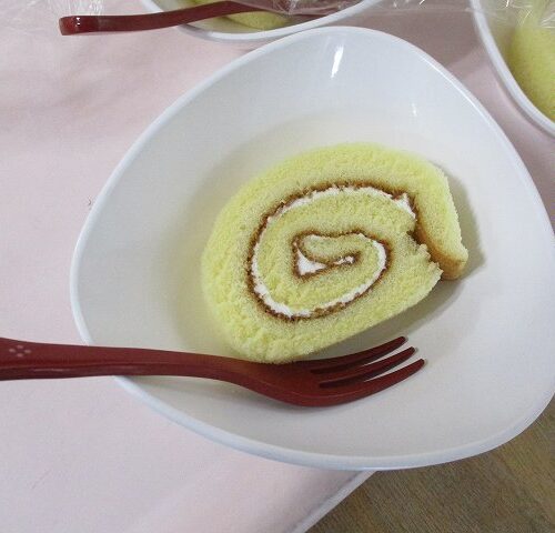 ちなみに今日のおやつは「ロールケーキ」でした。