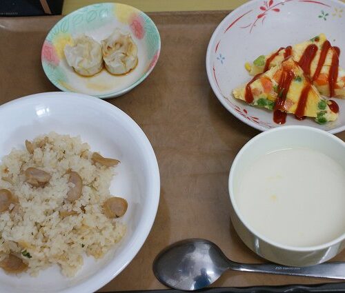 ガーリックライス / 彩りキッシュ / 豆腐焼売 /コーンスープ