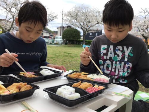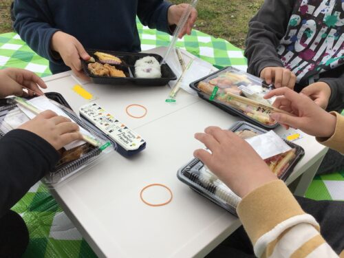 今日はお弁当をみんなで食べました!