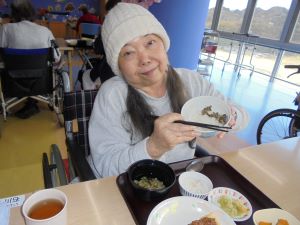 4階のリーダー職員が、たくさんのわらびを採ってきて、わさび漬けとみそ煮を作り
