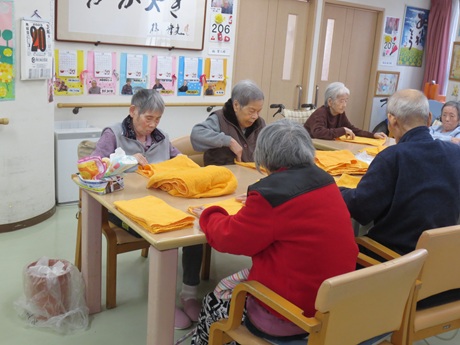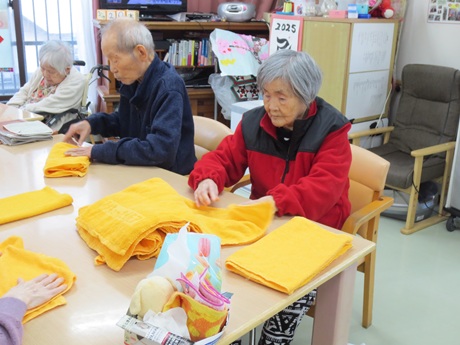グループホームかがやき ♪ タオルたたみ ♪ 2025-03-28 2025-04-03 タオルたたみのお声掛けしました🌸 進んで行って下さりました🌸 枚数も10枚づつ数えて、揃えて下さいました🌸 ☆彡 う す い ☆_(._.)_