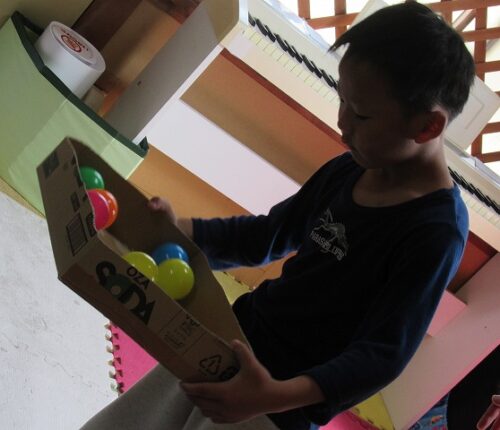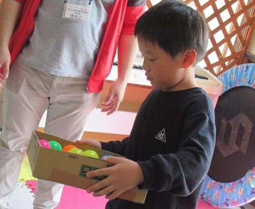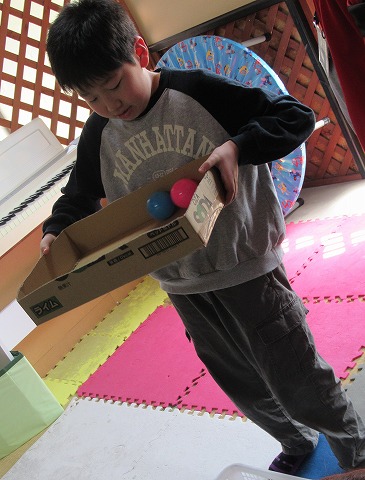 特定の色のボールだけ穴に落としたり、