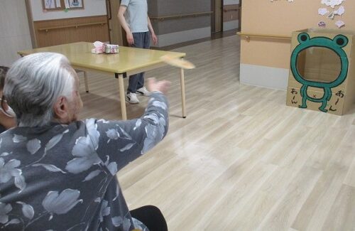 さわやか室蘭弐番館 3階 3日午後の様子♪ 2025-04-04 2025-04-04 皆様こんにちは♪ 昨日の午後の様子をお届けします おやつ前にゲームを楽しみました ケロケロ フリスビーです 大きく開いたカエルの口に フリスビーをそれっ 笑い声で賑やかな3階でした☆