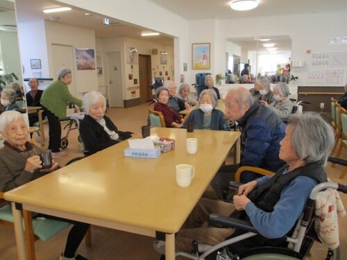 本日はお誕生日会の日のケーキを召し上がられている時の