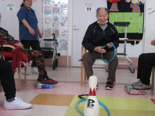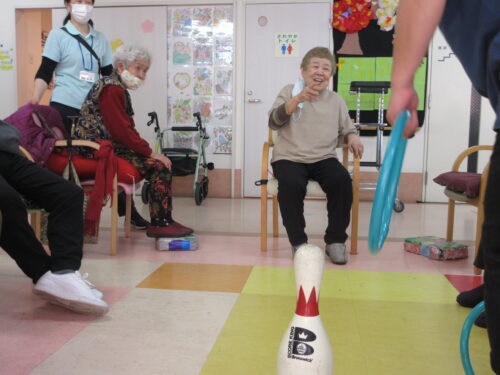 さくら山荘の輪投げは、本物のボーリングのピンを
