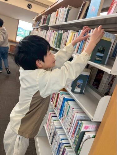 図書館に着くとそれぞれ好きな本を探し、真剣に読書を楽しんでいました😊✨