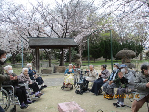 ご入居者様が「 天気も桜もきれいな事ですし私らのケアマネさんどうぞ一曲!! 」