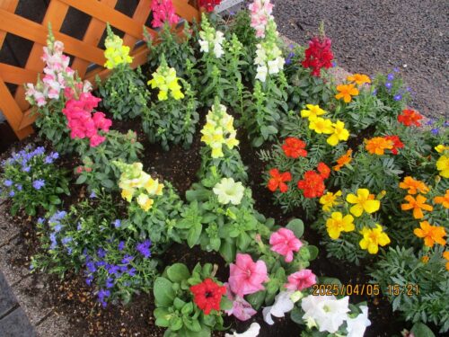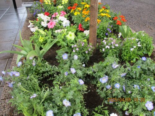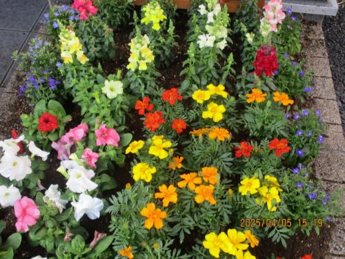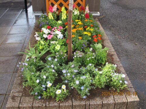 ながれやま館の正面玄関にある花壇に春のお花を植えました♪
