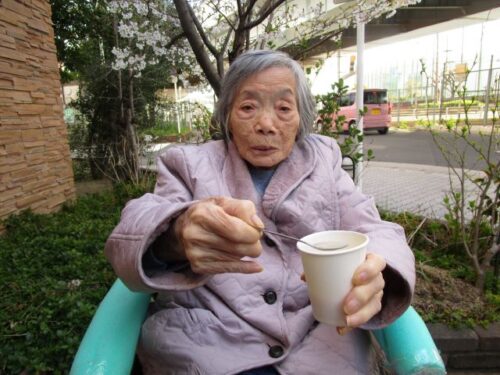 施設の前に桜が咲いているととてもいい気持になりますね😊