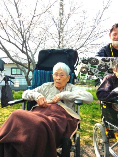 本日のお花見は 車椅子で近くの元気公園に行って来ました (^^)v