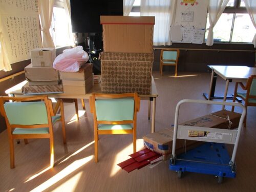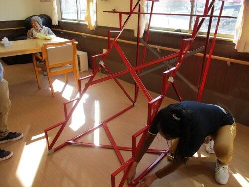 ご入居者様も飾り付けの様子をご覧になられています😊