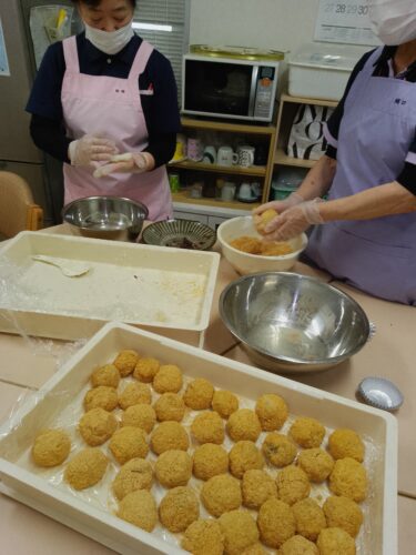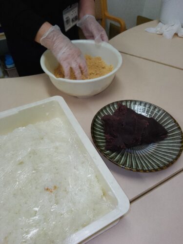 春のお彼岸の頃に スタッフの 手作りおはぎを 皆様に召し上がって頂きました。