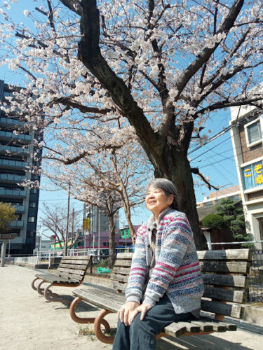 心地よい風に吹かれながら桜を眺めました。