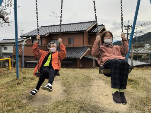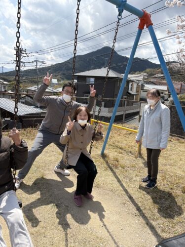 お花見のあとはブランコで遊びました😆