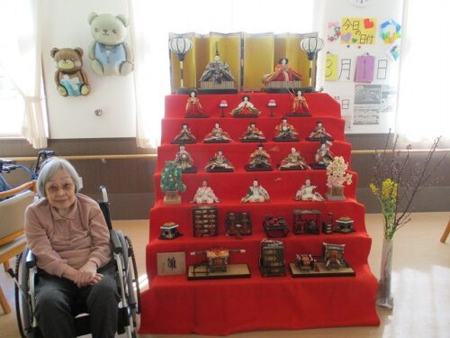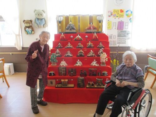 出来上がったお雛様の前でご入居者様とお写真を撮らせて頂きました📸