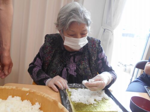 つつじユニットの様子 【のり巻き、おいなり作りました】