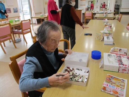 その横で黙々とお豆の仕分け作業!これはリハビリになりますね!!