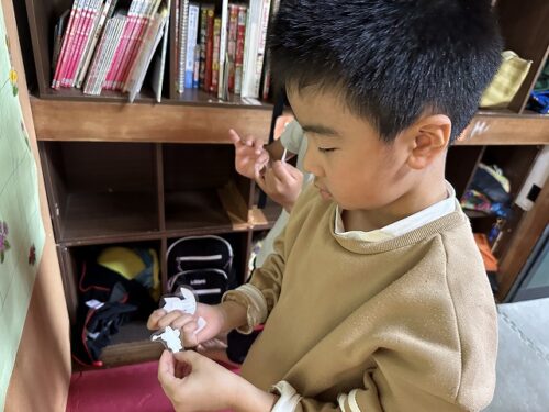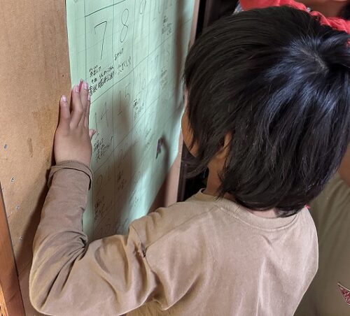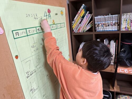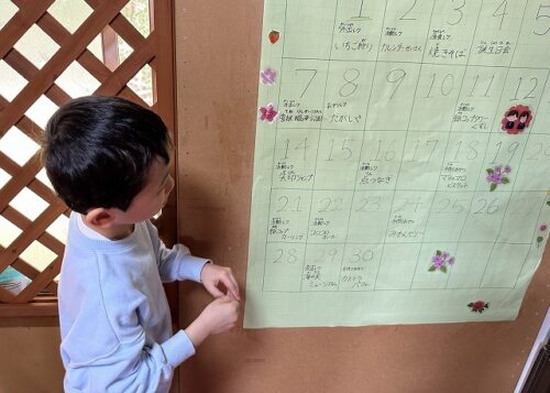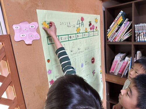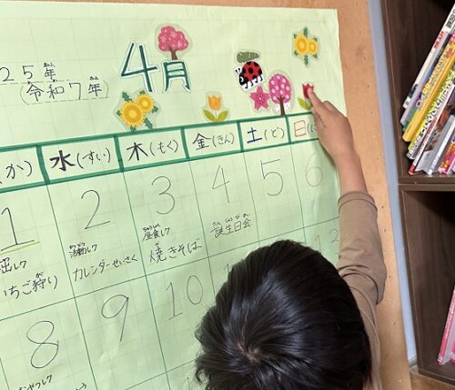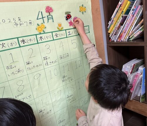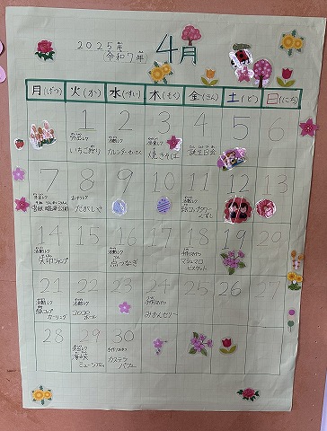 カレンダーに貼りつけて飾りつけをしましたよ~。