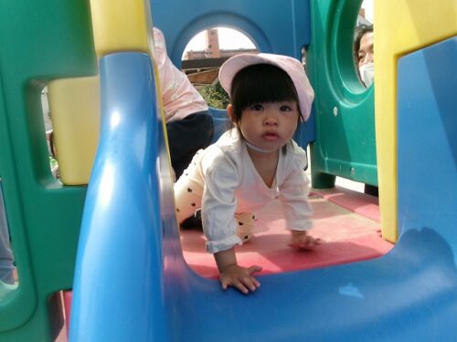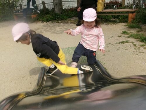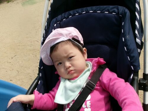 2歳児さんは頑張って歩き、1歳児さんはカートとベビーカーに乗って…